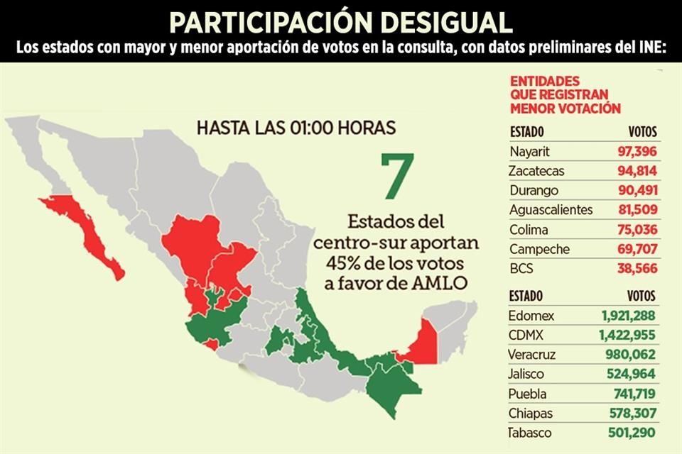 Entre 14 y 16 millones de mexicanos votaron ayer a favor de AMLO, cifra que equivale a la mitad de sufragios del 2018 cuando fue electo. Crédito: Especial.