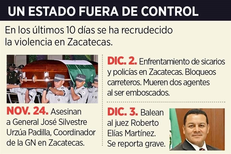 El crimen en Zacatecas ahora atentó contra un Juez, que hasta anoche se reportaba grave tras recibir varios disparos cuando salía de casa. Crédito: Especial.