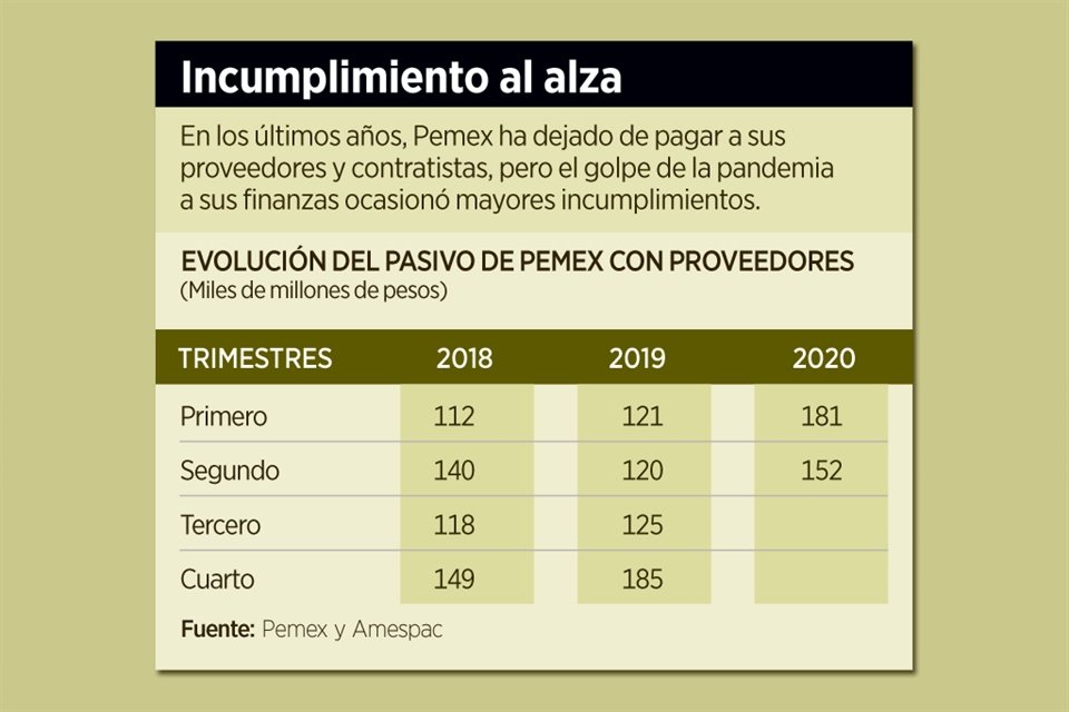 Petróleos Mexicanos (Pemex) adeuda a sus proveedores más de lo que tiene registrado en sus estados financieros.
