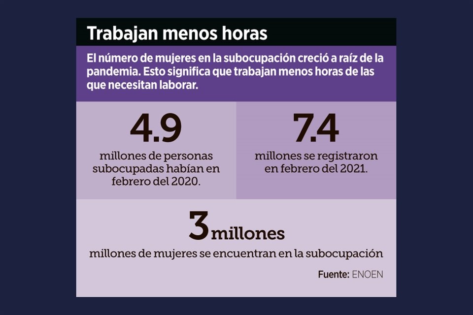 La tasa de subocupación de mujeres creció 6.7 puntos porcentuales en el último año, a diferencia de la de los hombres, que se incrementó 4.3 puntos porcentuales, según cifras de la ENOEN.