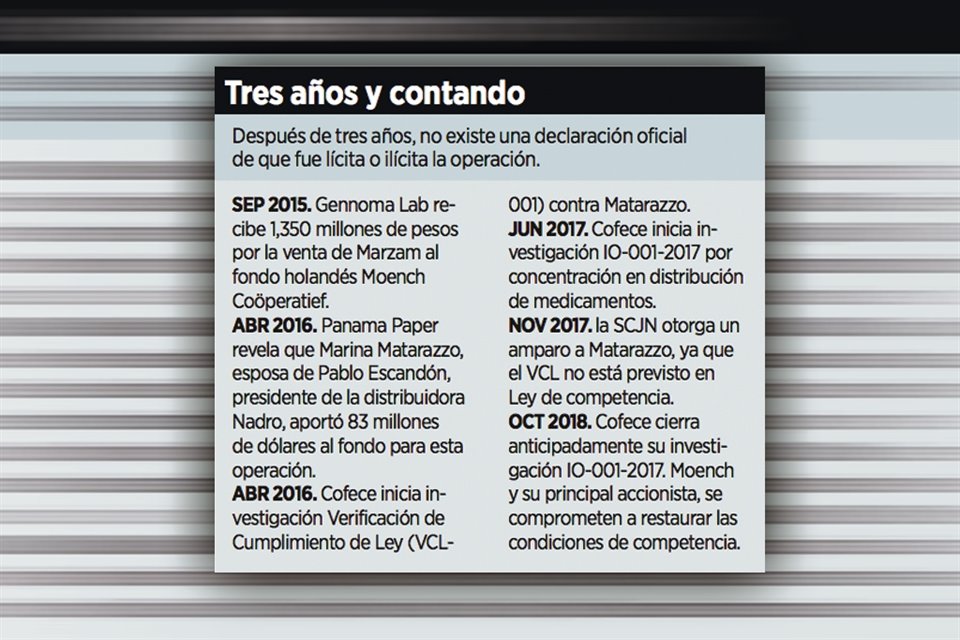 El fondo holandés Moench Coöperatif (Moench) y su principal accionista Luis Doporto Alejandre defendieron que la adquisición de Marzam nunca representó un daño a la libre competencia en el mercado de distribución de medicamentos en el País y que desde su perspectiva dicha transacción fue declarada como legal por parte de la Comisión Federal de Competencia Económica.