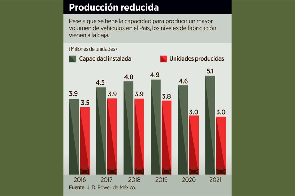 Los paros técnicos momentáneos en las líneas de producción de varias armadoras por la falta de chips, dejaron ociosa 41 por ciento de la capacidad instalada de las fábricas que tienen en México en 2021.