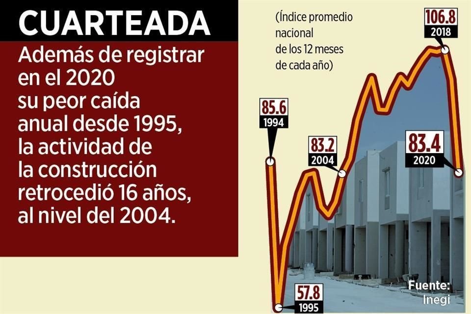 En el 2020, México sufrió una caída anual de 17.5 por ciento en su industria de la construcción, la más profunda desde hace 25 años, revelan cifras del Inegi.