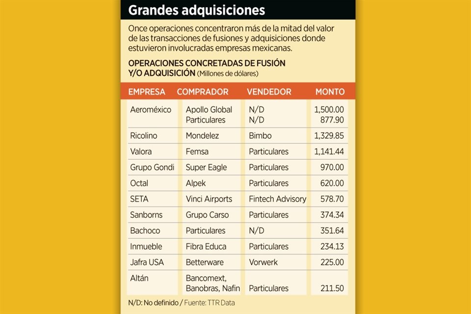 El año pasado se registraron más de 16 mil millones de dólares en operaciones de fusiones y adquisiciones involucradas con empresas mexicanas, de acuerdo con el reporte anual de TTR Data.