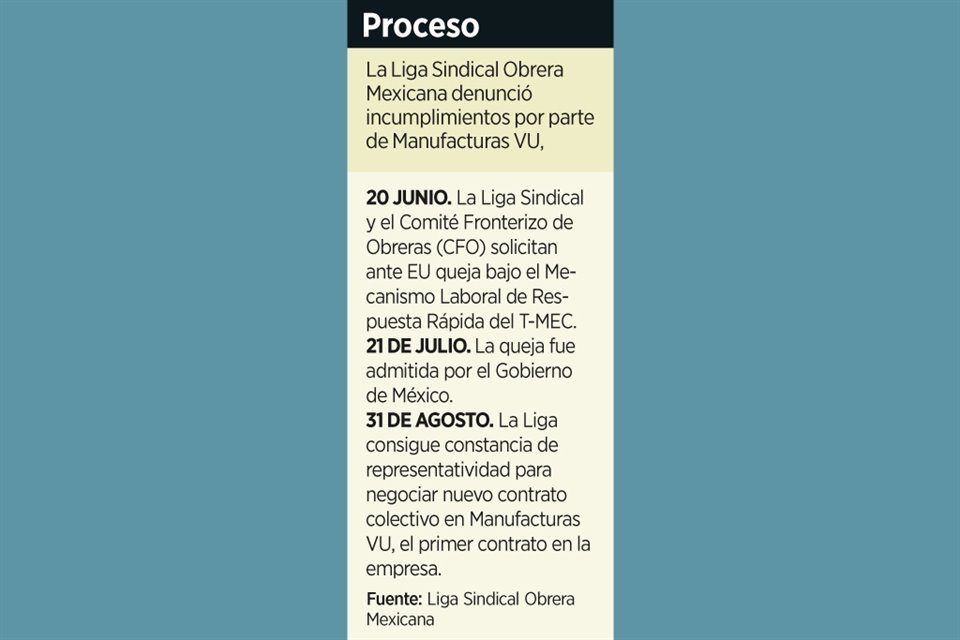 La Liga Sindical Obrera Mexicana denunció incumplimiento de compromisos de la empresa Manufacturas VU, un caso que se había resuelto a través del Mecanismo Laboral de Respuesta Rápida, en el marco del T-MEC.