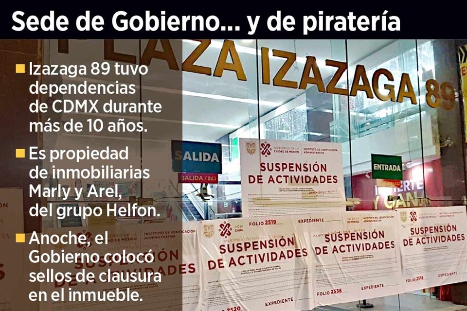 Durante el día de ayer, los comerciantes de la plaza de Izazaga 89 sacaron sus mercancías del edificio. Por la noche, el Gobierno capitalino colocó sellos de clausura en la entrada del inmueble.
