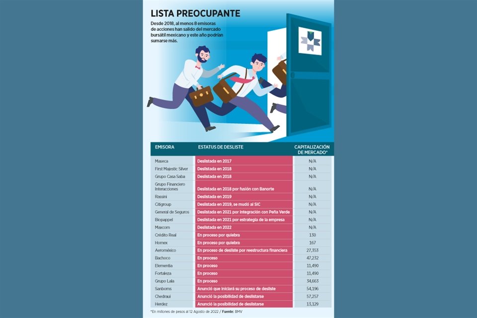 El desempeño de la economía mexicana ha desalentado la inversión de las empresas, especialmente las extranjeras, lo que ha generado que ocho se deslistaran desde 2018 a la fecha y otras ocho estén en proceso de hacerlo, consideraron expertos.