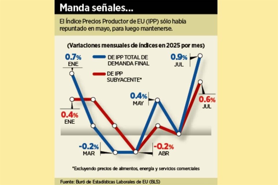 La inflación al mayoreo en EU -referente a los precios de bienes y servicios de la producción nacional- resultó en julio la más alta desde marzo del 2022, con lo que ayer las apuestas en el Chicago del Mercantile Exchange (CME) de un fuerte recorte a la tasa de interés de la Fed en septiembre se desvanecieron.