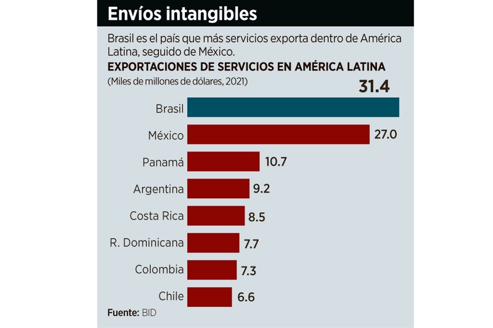 México es el segundo mayor exportador de servicios en América Latina, después de Brasil, por la apertura comercial que se logró con los Tratados de Libre Comercio (TLC).