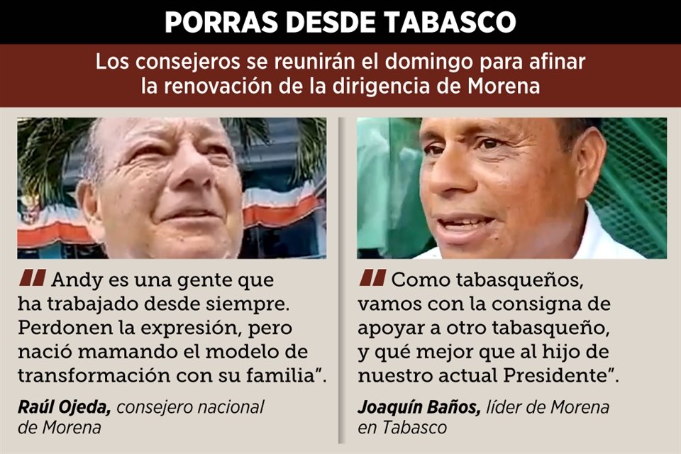 Consejeros nacionales de Morena en Tabasco impulsan la candidatura de Andrés Manuel López Beltrán, uno de los hijos del Presidente Andrés Manuel López Obrador, para la dirigencia de Morena.