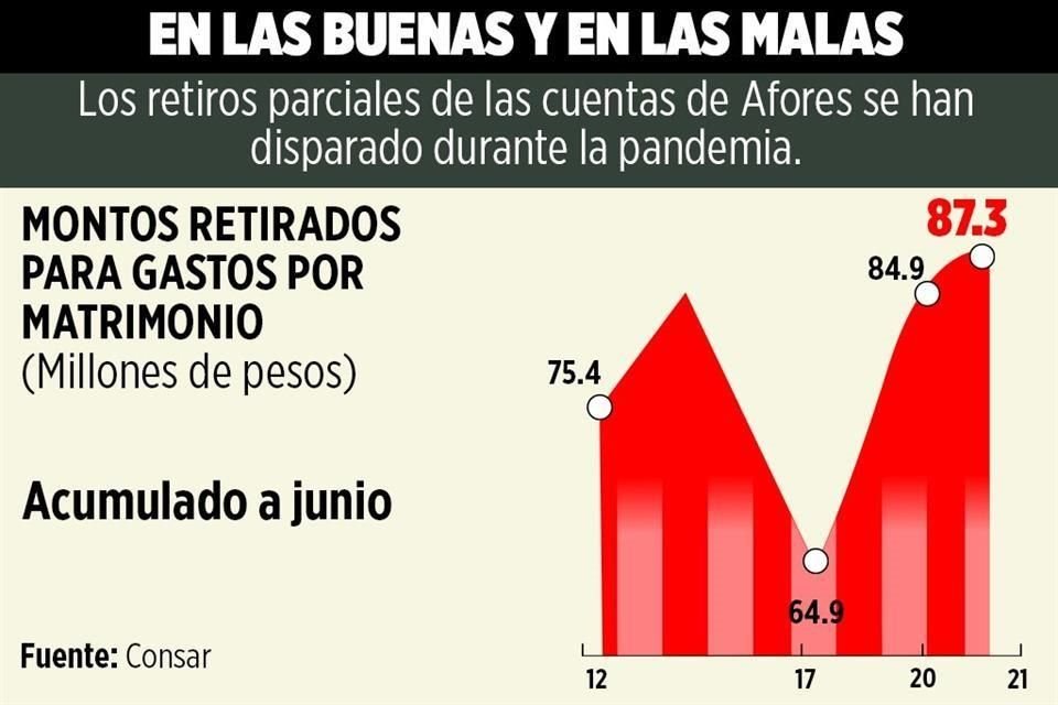 Para compensar los menores ingresos por causa de la crisis, las familias mexicanas están recurriendo más que nunca a retirar dinero de sus Afores bajo el retiro por matrimonio.