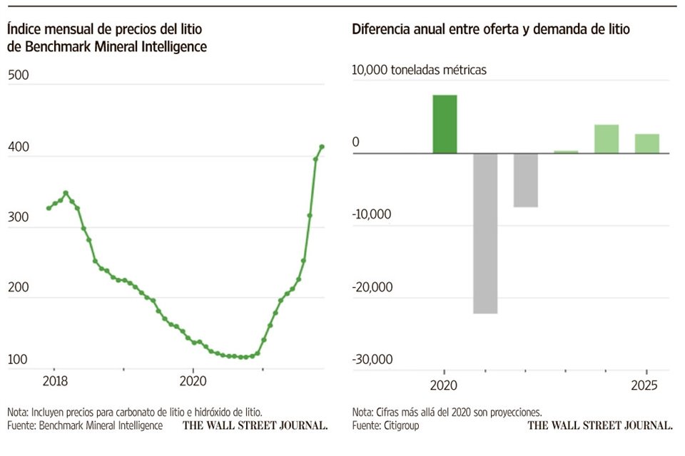 Los precios del litio están subiendo a su ritmo más rápido en años, desatando una carrera para asegurar suministros y avivando inquietudes sobre escasez a largo plazo de un ingrediente vital de las baterías recargables que hacen funcionar todo, desde vehículos eléctricos hasta smartphones.