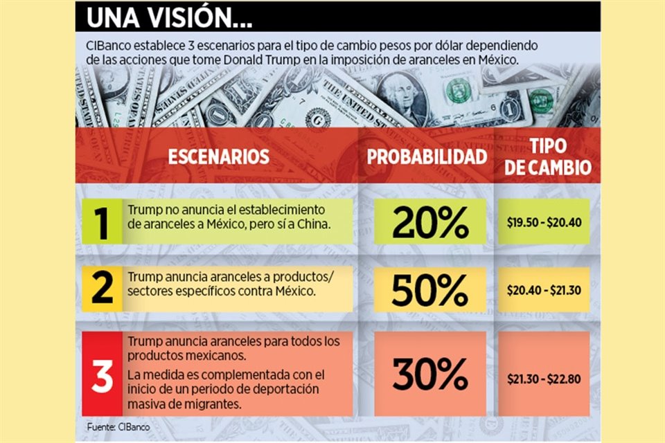 En el escenario más adverso, con una mezcla de medidas de Donald Trump contra México, el dólar podría dispararse hasta a unos 23 pesos, coincidieron dos de cuatro especialistas, y otro previó una cotización mayor.