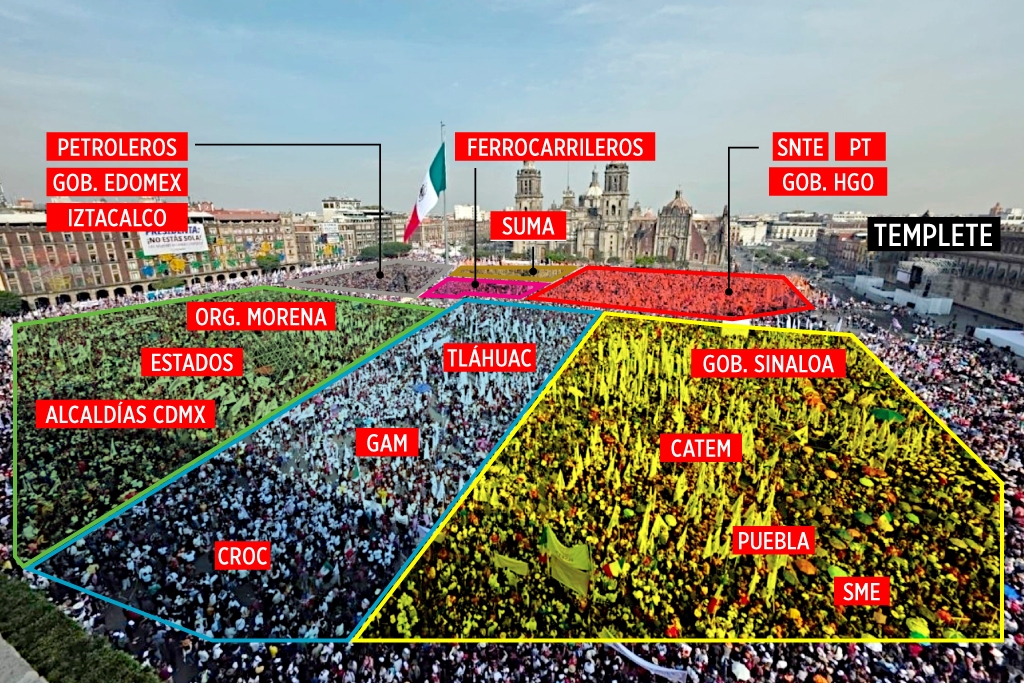 Antes de que la Presidenta Claudia Sheinbaum subiera al templete para encabezar el festejo del séptimo aniversario de la Cuarta Transformación, las organizaciones sindicales ya habían librado su propia batalla: la disputa por cada centímetro de la plancha. No era una concentración; era un reparto de territorio.