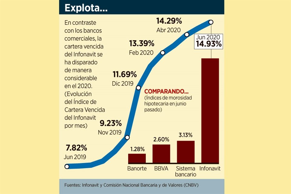 El Índice de Cartera Vencida (ICV) del Infonavit, del que este organismo sostiene que una proporción importante deriva de una reclasificación hecha en el 2019, se duplicó en el último año.