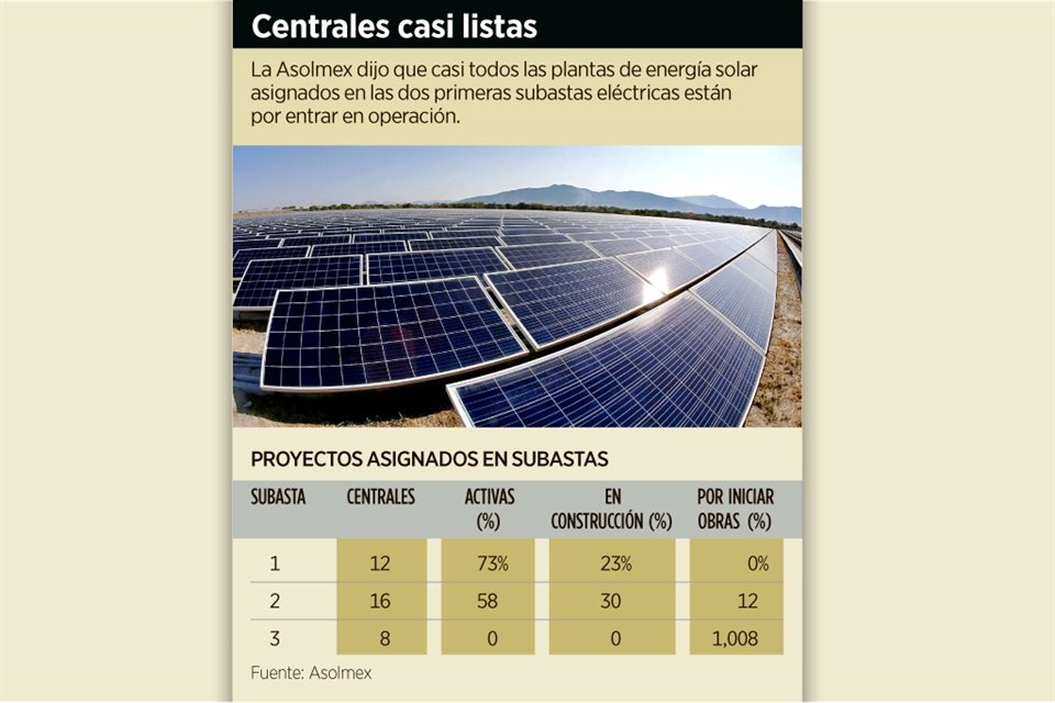 Este año se prevé que entren en operación 45 nuevas centrales de energía solar, con lo que sumarán en total 92 centrales activas a nivel nacional, dijo la Asociación Mexicana de Energía Solar (Asolmex).