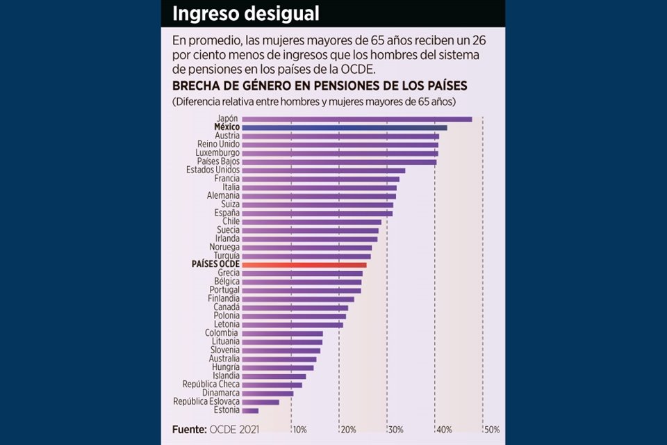 México tiene una brecha de género en pensiones mayor a 40 por ciento y el Covid-19 está empeorando la diferencia, alertó la OCDE.