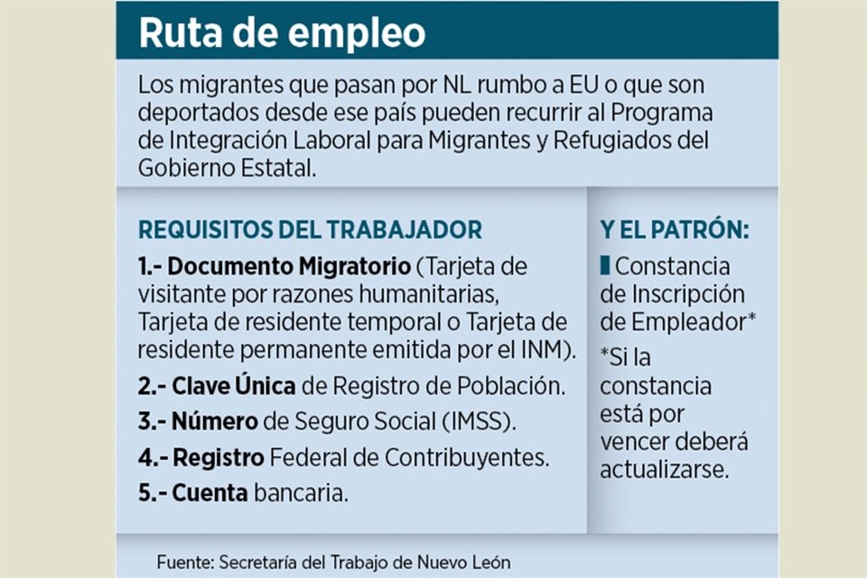 Nuevo León está listo para integrar al empleo hasta 10 mil inmigrantes que fueran deportados de Estados Unidos a México, como amenaza hacerlo el Presidente electo Donald Trump una vez que tome posesión de su cargo el 20 de enero, aseguró Federico Rojas, Secretario del Trabajo en el Estado.