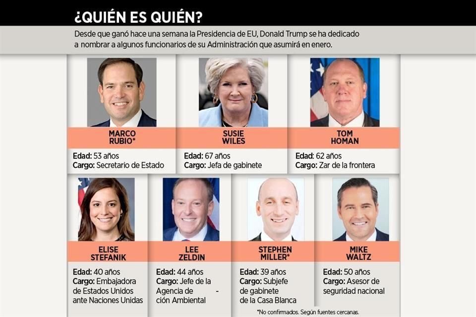 El Presidente electo de Estados Unidos, Donald Trump, prevé nombrar al senador Marco Rubio de Florida como su Secretario de Estado, dijeron ayer tres personas familiarizadas con sus decisiones, mientras el republicano avanza rápidamente para completar su equipo de política exterior y seguridad nacional.