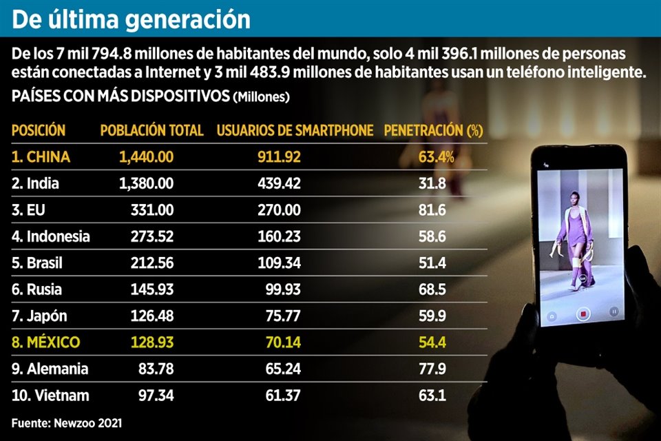 Con 70.14 millones de celulares inteligentes funcionando, México es el octavo mercado más grande a nivel mundial y el segundo en Latinoamérica, superado solo por Brasil, donde más dispositivos hay en la población, según el reporte Global Mobile Market Report de Newzoo.
