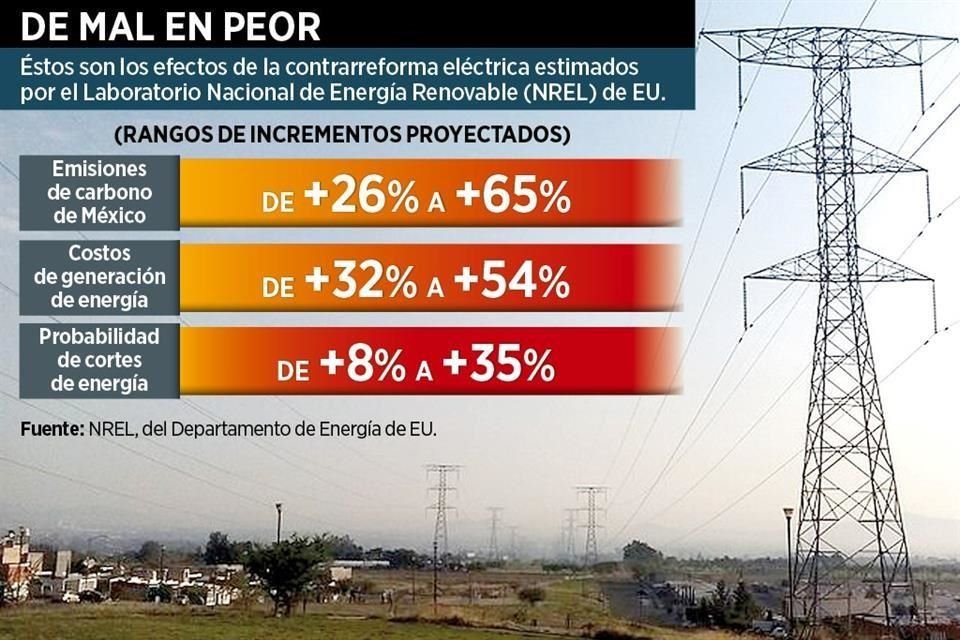 Las emisiones de carbono de México podrían dispararse hasta en un 65 por ciento, lo mismo que los costos de la electricidad, si el País aprueba las reformas que otorgan al Estado un mayor control sobre el mercado eléctrico, alertó ayer el Departamento de Energía de Estados Unidos.