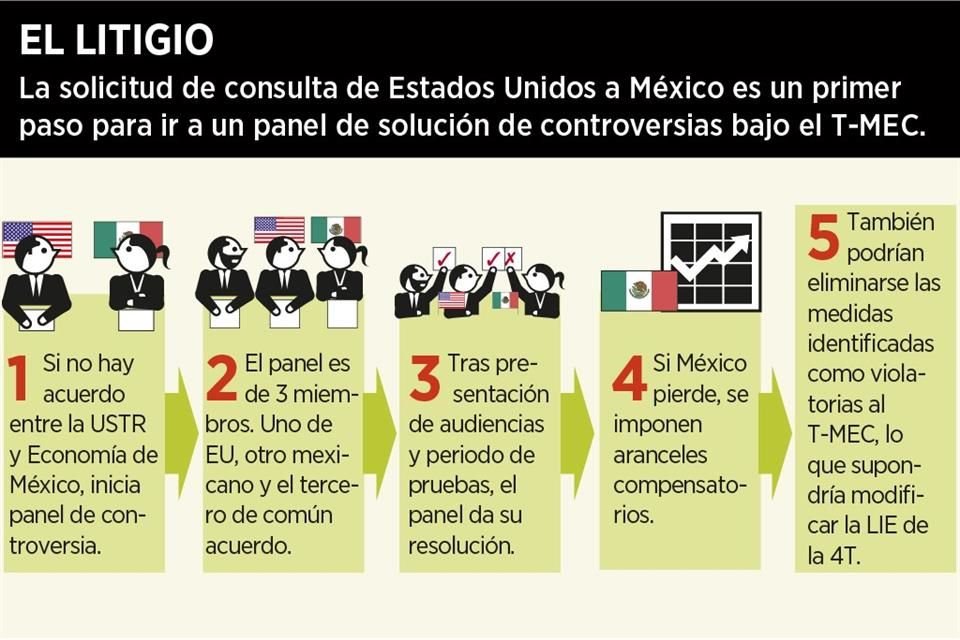 El Gobierno de Estados Unidos solicitará hoy consultas de resolución de disputas con México en virtud del acuerdo comercial T-MEC por lo que considera son políticas energéticas discriminatorias a favor de las estatales CFE y Pemex, y en detrimento de las compañías estadounidenses.