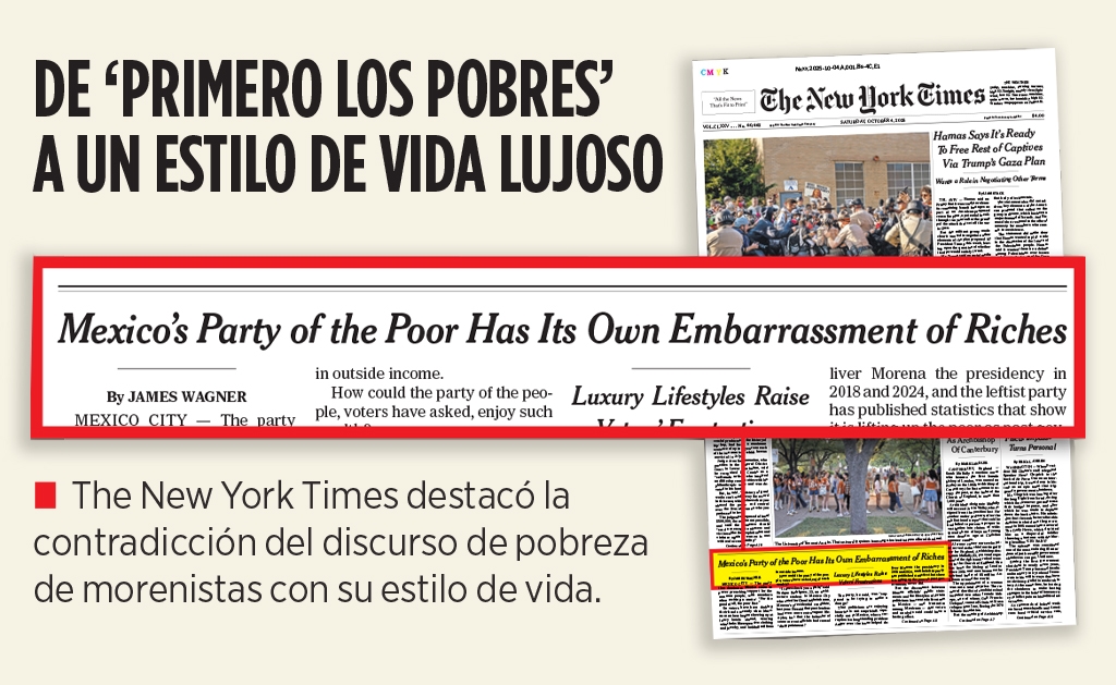 Con el título "Morena, el partido gobernante de México, en aprietos por los gastos de algunos miembros", la nota periodística hace un recuento de cómo la oferta de defender a los más desfavorecidos y el lema de "Por el bien de todos, primero los pobres" choca con los viajes al extranjero, estancias en hoteles de lujo e ingresos millonarios de parte de los miembros más prominentes.