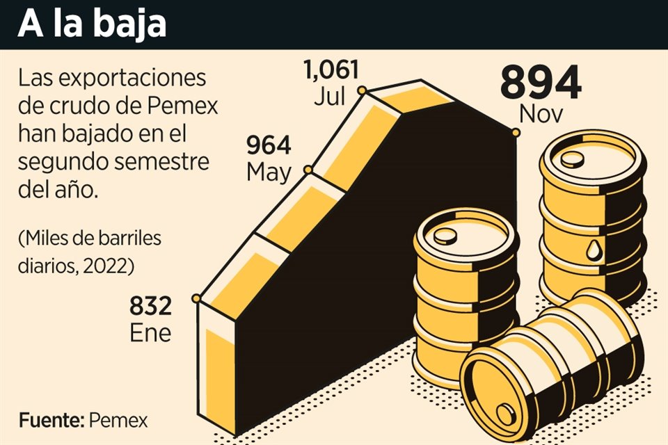 Exporta México menos crudo