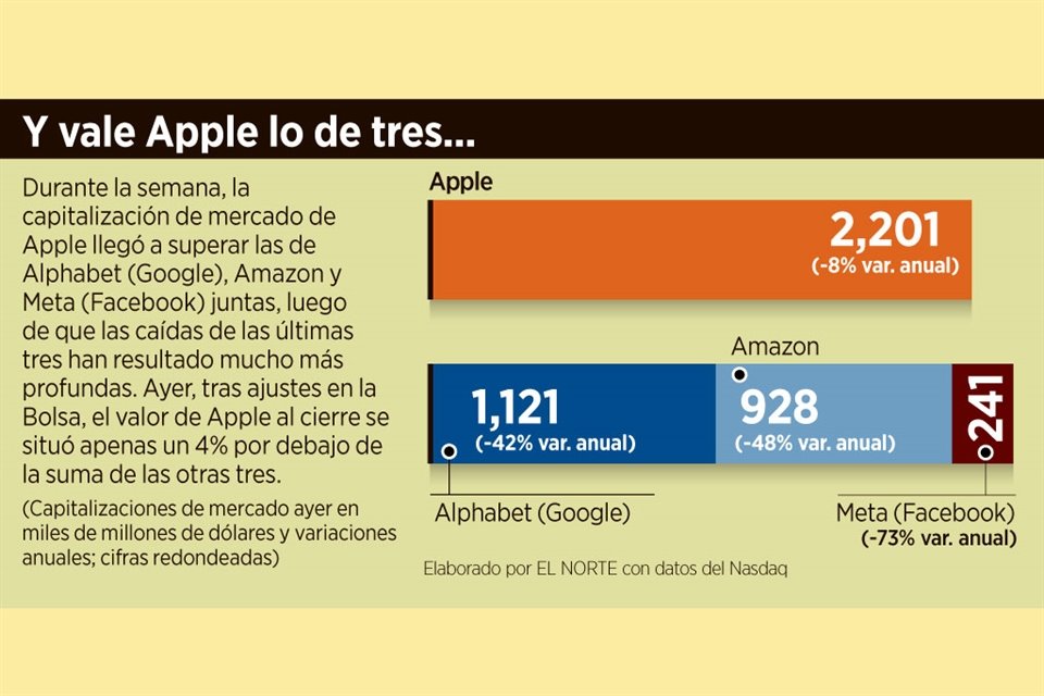 Un billón de dólares (millón de millones) fue la capitalización de mercado de Facebook hace poco más de un año, justo antes de que la empresa decidiera cambiarse el nombre a Meta.