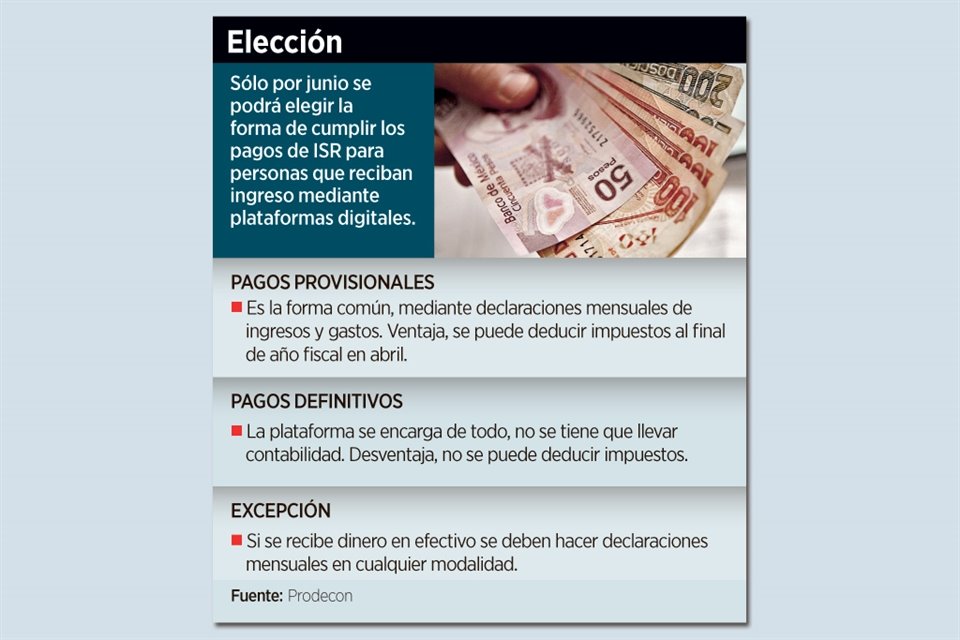 Las personas que reciben ingresos por servicios prestados a través de plataformas digitales tienen hasta el final de mes para elegir la forma en que pagarán su ISR, pues después de esta fecha no podrán hacer cambios en 5 años.