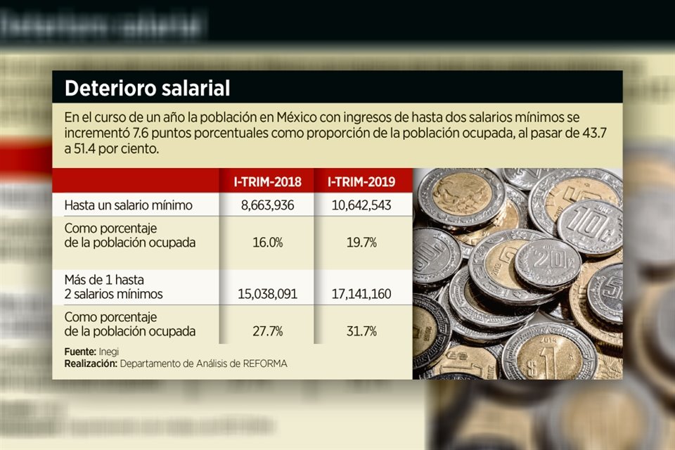 En México, 51.4 por ciento de la población ocupada ganaba hasta 2 salarios mínimos al cierre del primer trimestre del año, según datos del Instituto Nacional de Estadística y Geografía (Inegi).