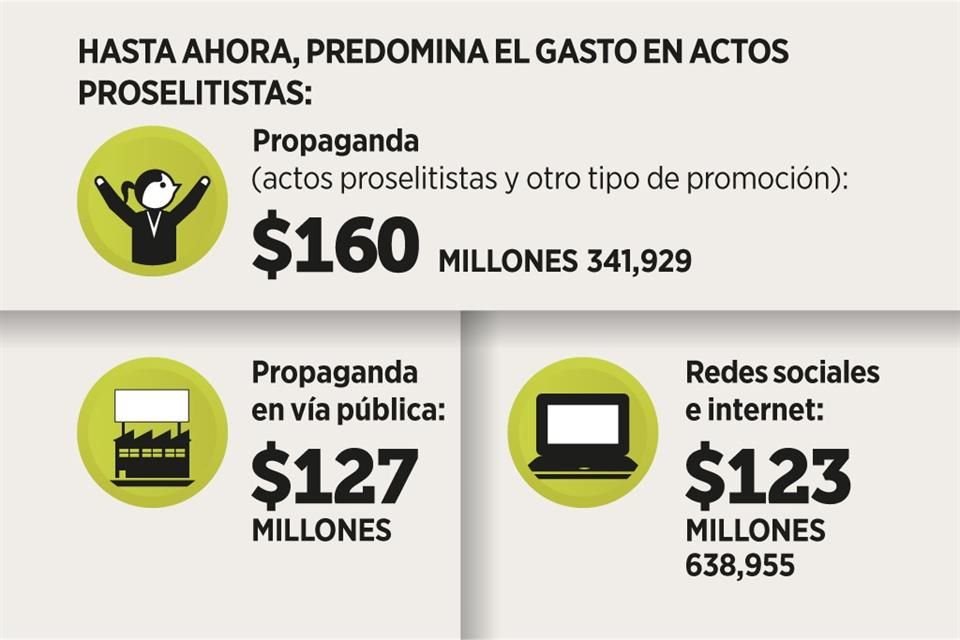 A un mes de elección, candidatas y candidato a Presidencia de la República han reportado al INE gastos por 538 mdp en 61 días de campaña. Crédito: Especial