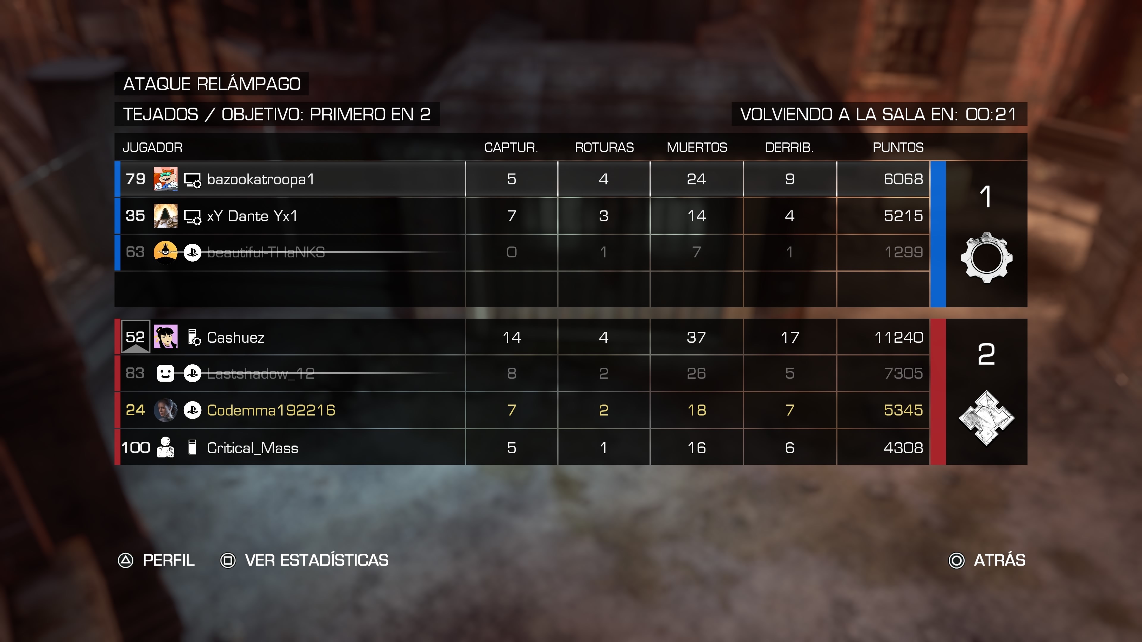 El otro modo de juego, bastante adicitivo, es el Multijugador. Tenemos la opción de jugar Partida Social o Partida Competitiva. En ambos, podemos entrar a la sala previa al juego para escoger el diseño de rifles y escopeta, así como personajes, Locust o Humanos.