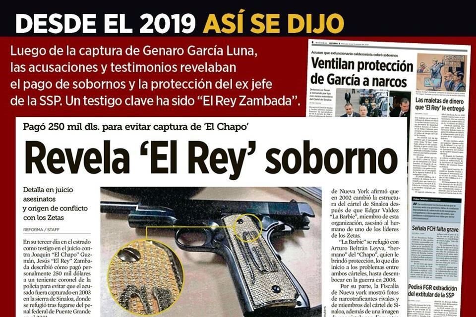 Frente a Genaro García Luna, Jesús Reynaldo Zambada García, alias "El Rey", miembro del Cártel de Sinaloa, aseguró haberle pagado sobornos millonarios para que protegiera a su organización criminal y le permitiera designar a jefes policiacos.