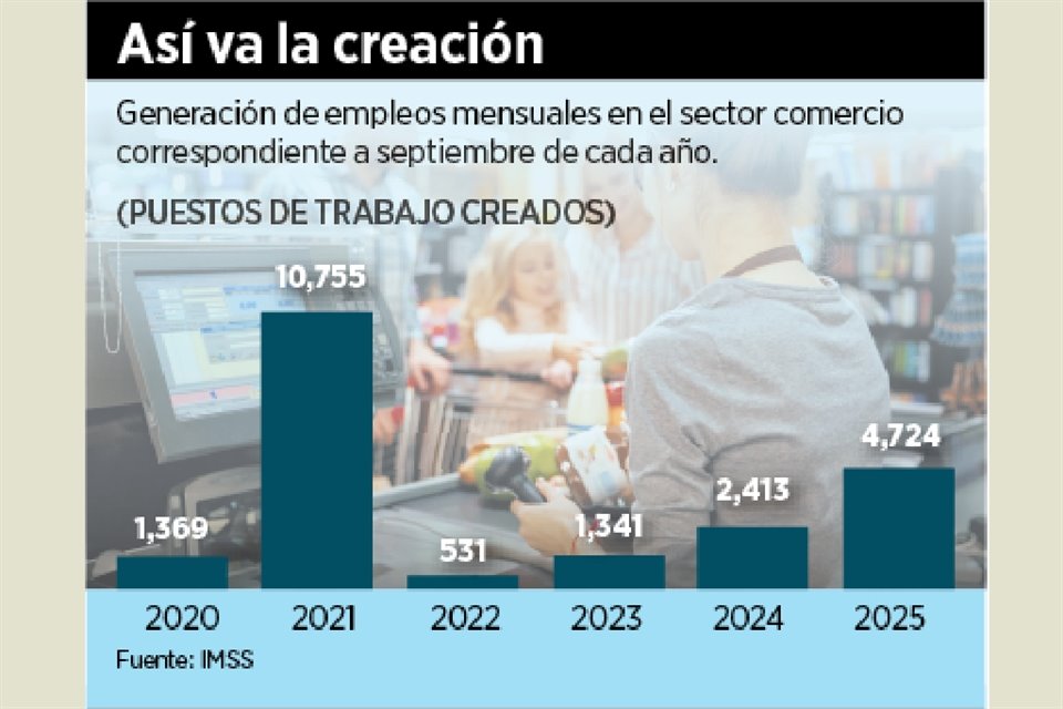 En septiembre, por segundo mes en el año, el sector comercio fue el de mayor generación de empleo formal en Nuevo León, de acuerdo con datos del IMSS.