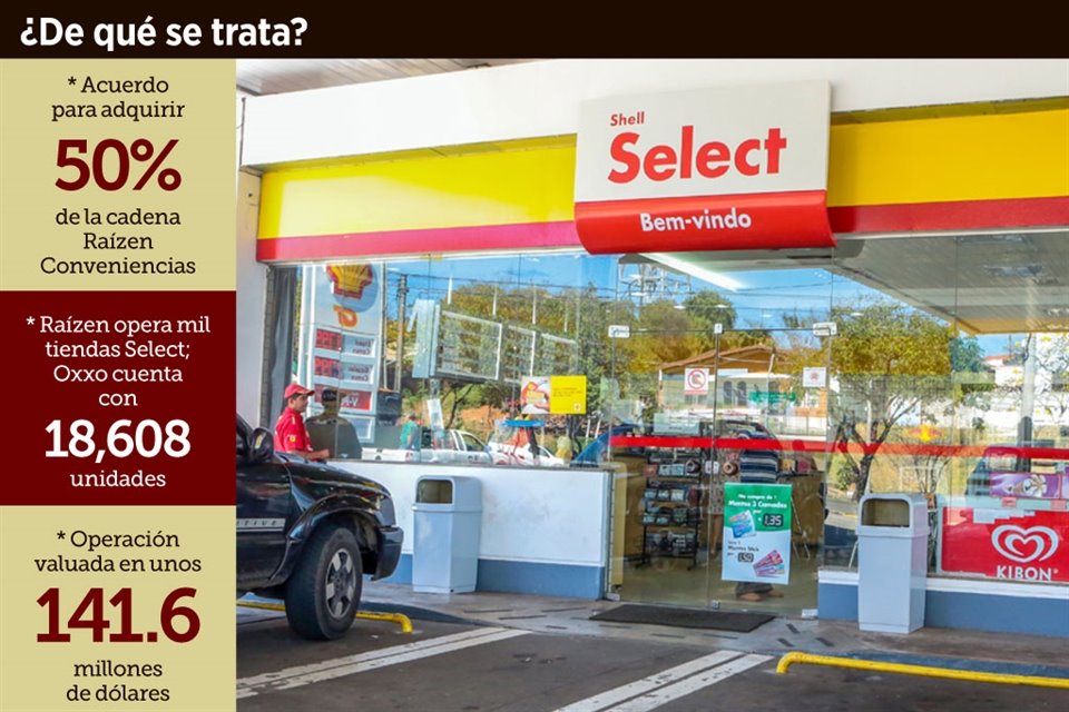 Femsa anunció la adquisición del 50 por ciento de la cadena Raízen Conveniencias, que cuenta con unas mil tiendas en Brasil de la marca Select, en una operación valuada en cerca de 141.6 millones de dólares.