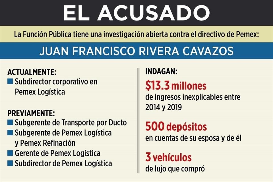 La Secretaría de la Función Pública (SFP) investiga la riqueza inexplicable de un alto funcionario responsable de la operación de los ductos de Pemex.