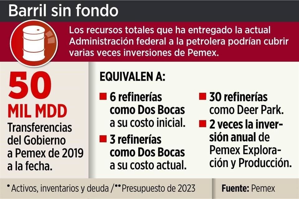 Aunque el Gobierno había sostenido que no le inyectaría más capital a Pemex, la petrolera confirmó ante inversionistas que Hacienda le transfirió 64 mil 970 millones de pesos, unos 3 mil 899 millones de dólares.
