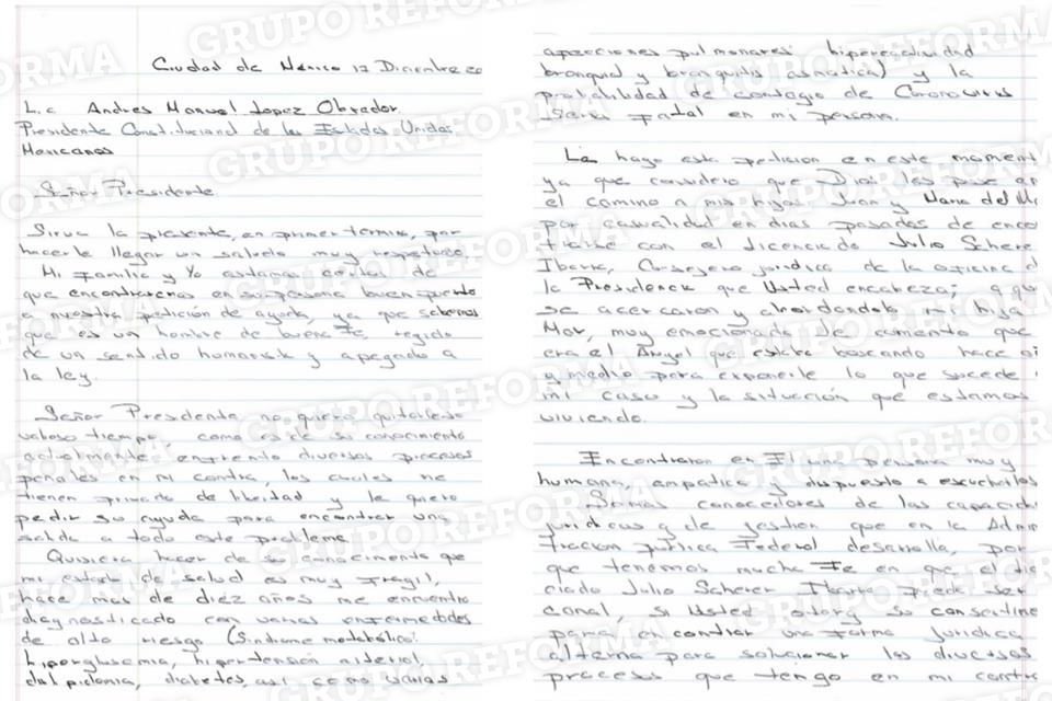En diciembre del 2020, el abogado Juan Collado envió al Presidente Andrés Manuel López Obrador una carta para pedirle que el entonces Consejero Jurídico, Julio Scherer Ibarra, fuese el intermediario para negociar un proceso reparatorio.