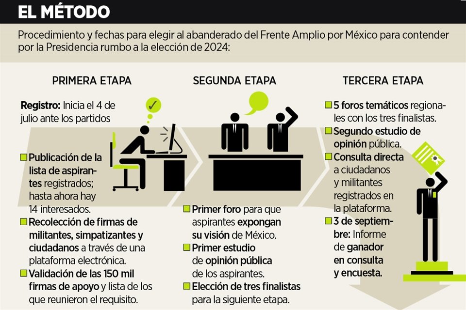 Mientras líderes de PAN, PRI y PRD celebraban el acuerdo alcanzado con organizaciones ciudadanas para crear el Frente Amplio por México de cara al 2024, aspirantes a la nominación expresaban sus dudas respecto a los alcances del método de selección y demandaban incorporar la votación digital.