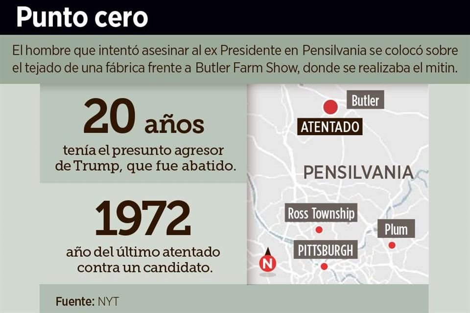 1) A las 18:10, hora local en Pensilvania (16:10, en México), un disparo impactó a Donald Trump. Crédito: Agencias.