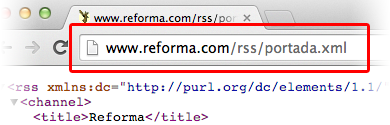Da click a la sección que quieres copiar y te aparecerá una página con texto de programación XML; copia la dirección que aparece en el "address" de tu navegador, luego ve a tu lector y da pegar o "paste".