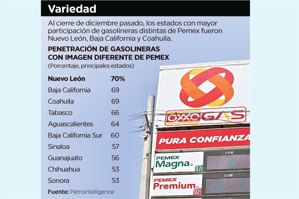 Para el año que recién terminó, Nuevo León fue el Estado que contó con más estaciones de gasolina con imagen diferente a Pemex.