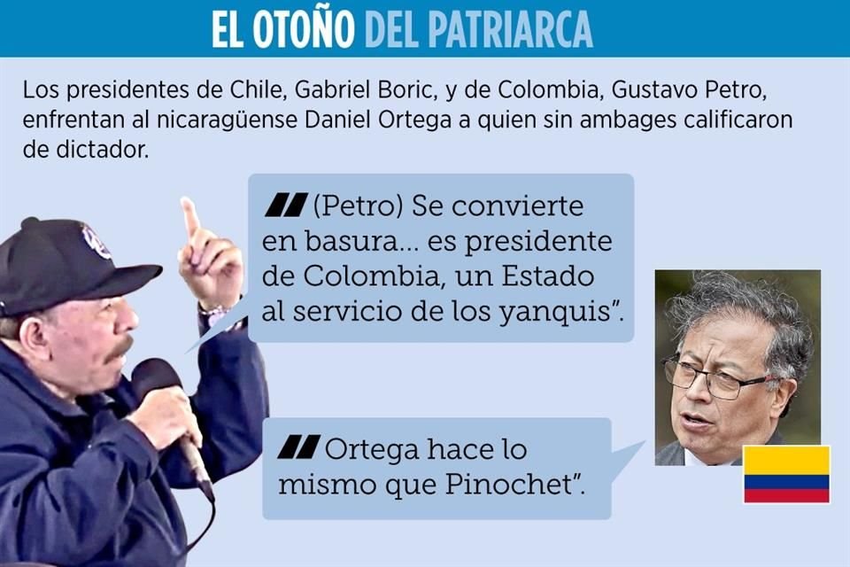 El Presidente de Nicaragua, Daniel Ortega, arremetió contra sus pares de Colombia, Gustavo Petro, y Chile, Gabriel Boric, a quienes llamó "traidor" y "pinochetito", respectivamente, luego de sus críticas por la situación de opositores.