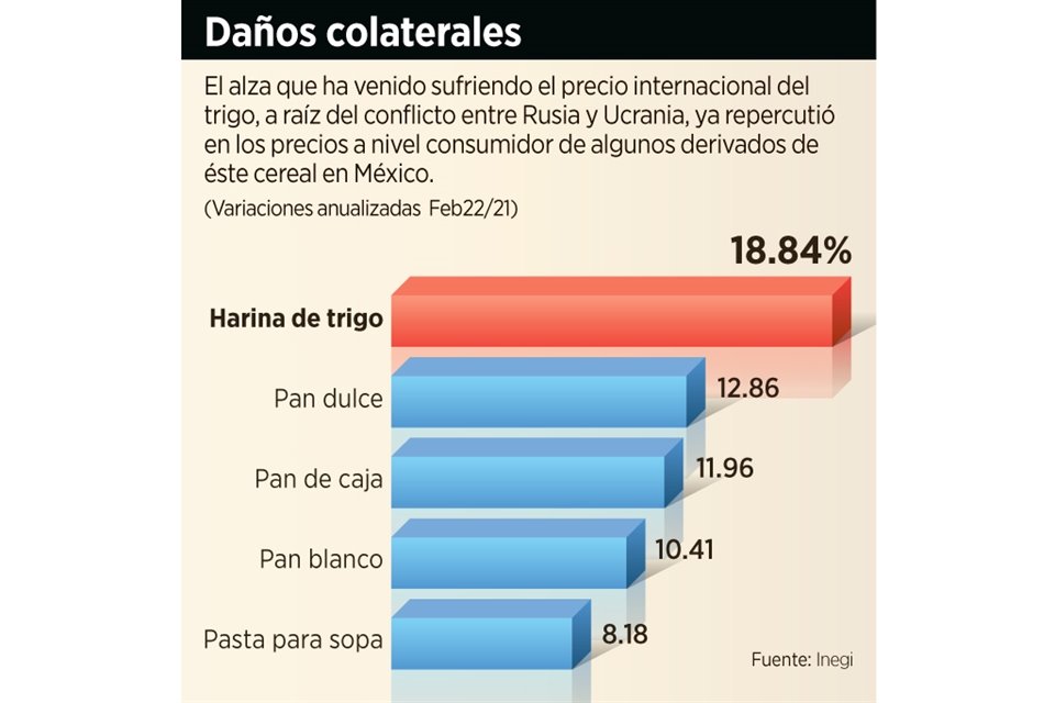 Los efectos de la invasión de Rusia a Ucrania están golpeando a las mesas en México, en particular a los precios de la harina de trigo, panes y pastas para sopas.
