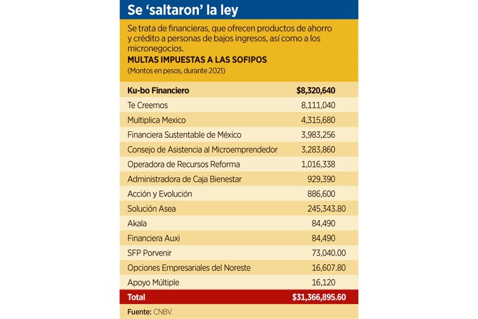 Las Sociedades Financieras Populares (Sofipos) fueron objeto de una "lluvia" de multas durante la pandemia, al recibir 300 por ciento más sanciones por parte de la autoridad.