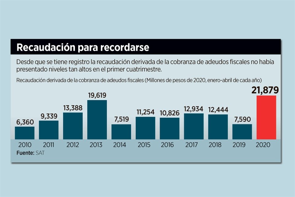 La nueva estrategia de presión del fisco hacia los contribuyentes ha permitido que la recaudación por cobranza de adeudos fiscales toque niveles récord en los primeros cuatro meses del año.