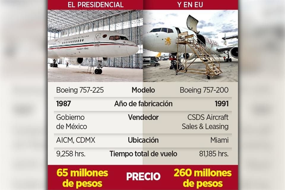El avión "Presidente Benito Juárez", un Boeing modelo 757-225, fue vendido ayer por el Gobierno federal en 65 millones de pesos, muy por debajo del precio al que se ofrecen aeronaves similares.