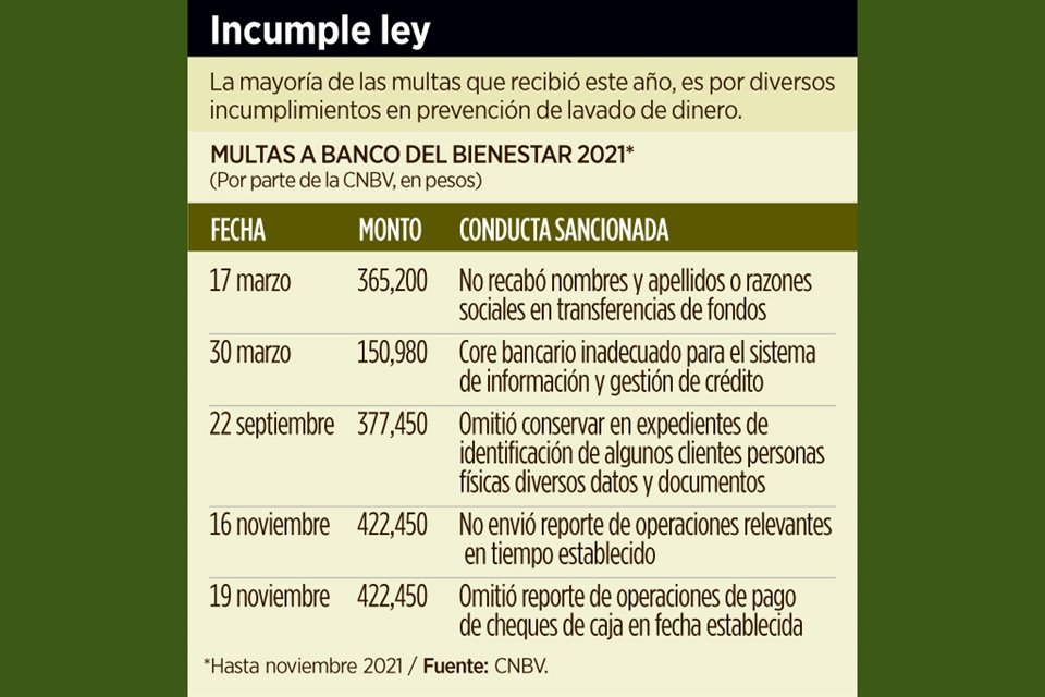 Al Banco del Bienestar le cayeron otras dos multas por infracciones a la regulación en prevención de lavado de dinero.