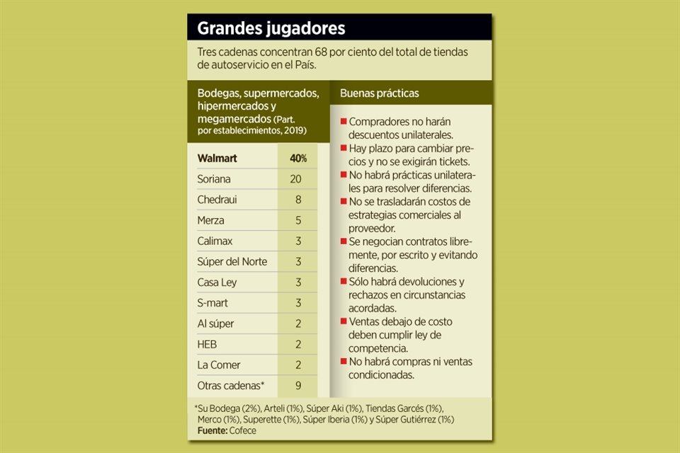 Ante la falta de competencia en las cadenas de autoservicio, la Comisión Federal de Competencia (Cofece) pidió a la Secretaría de Economía (SE) corregir las omisiones que ha tenido en el cumplimiento del Código de Prácticas Comerciales Competitivas.